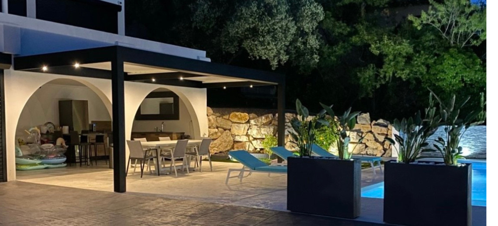 Complétez votre pergola LaNostra avec nos solutions d’éclairage et profitez de vos soirées jusque tard dans la nuit !