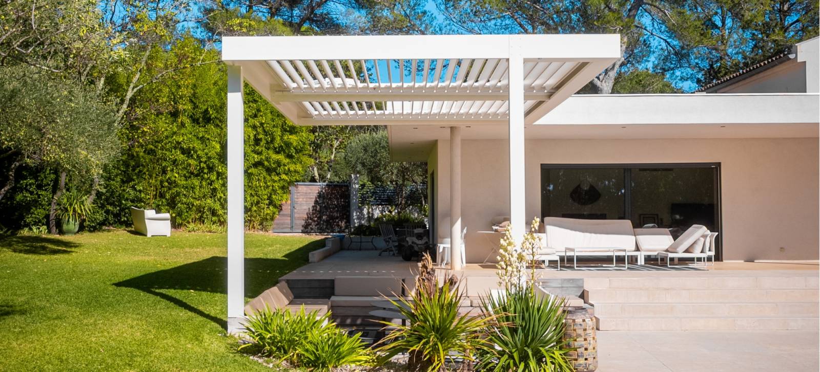 Une pergola haut de gamme installée dans le Var pour sublimer un extérieur et offrir un confort optimal toute l’année.